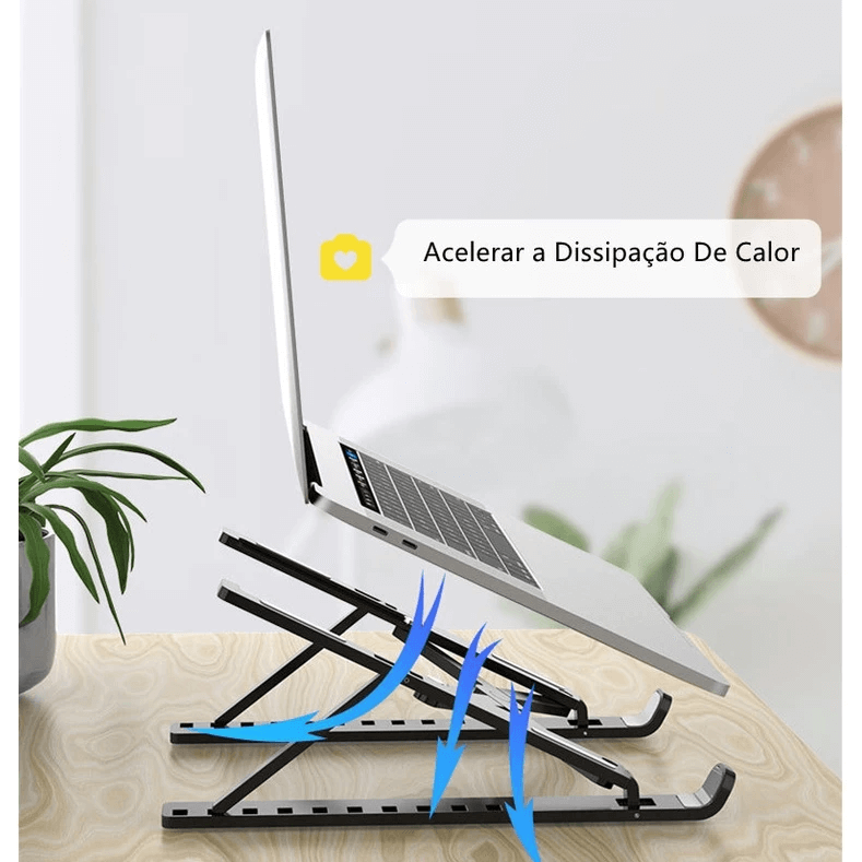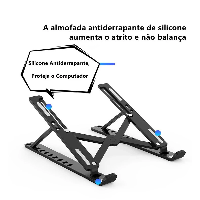 Almofada Antiderrapante: Equipado com almofadas antiderrapantes, garante mais segurança e estabilidade, evitando que o notebook deslize durante o uso.