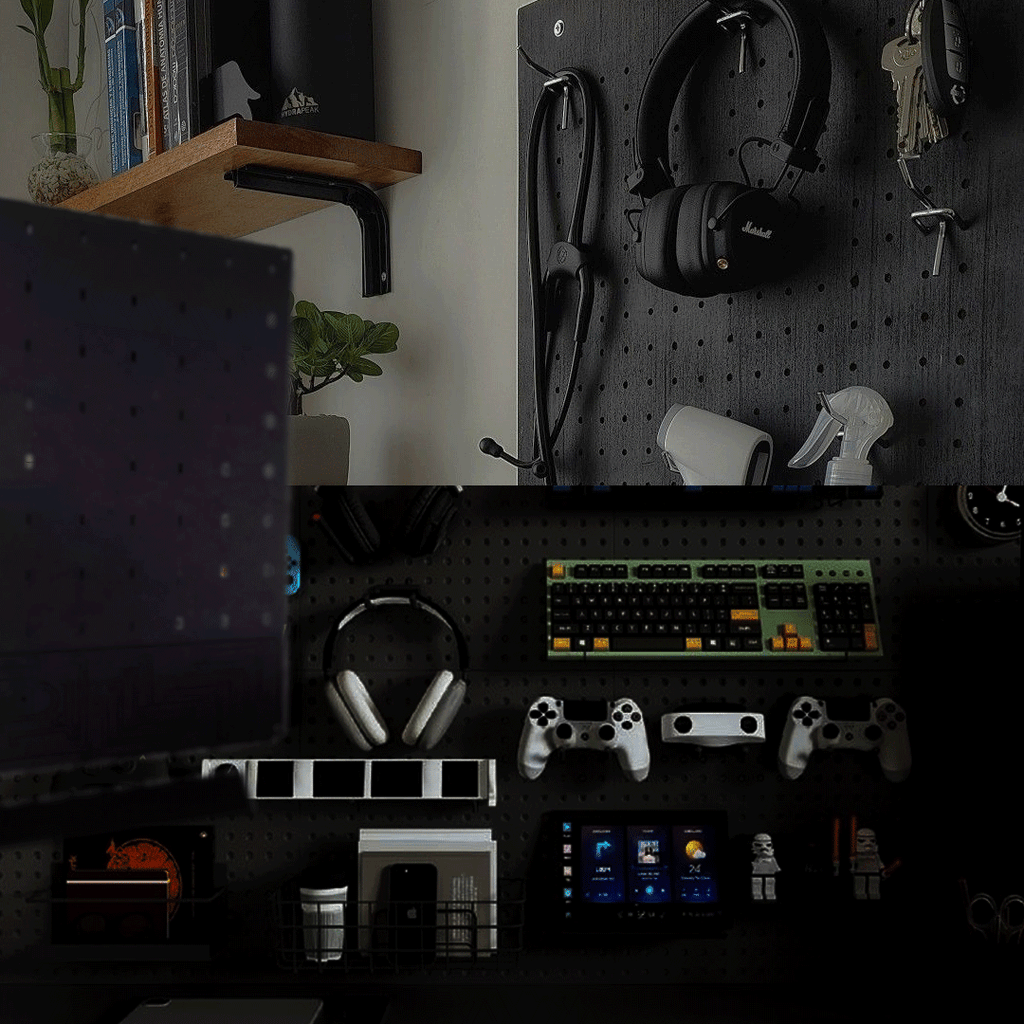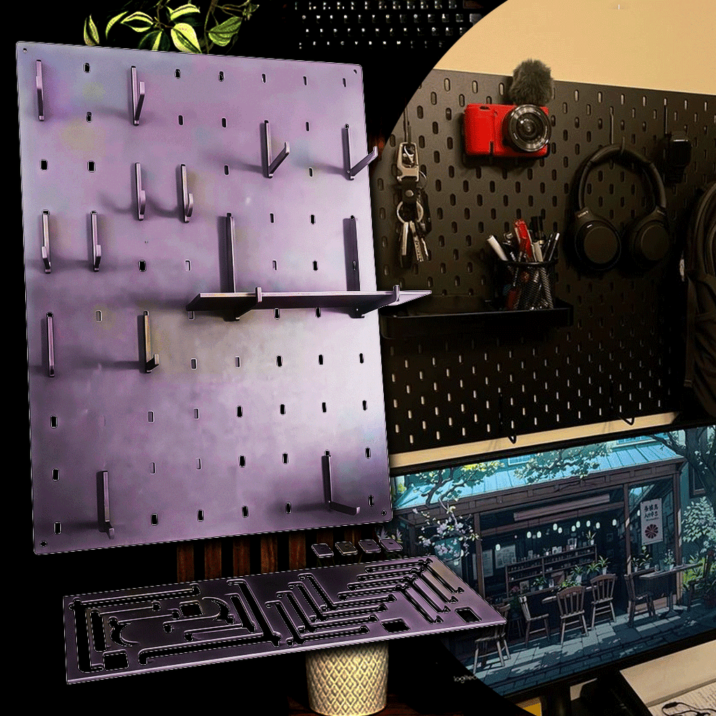 🔄 REVOLUCIONE SEU ESPAÇO EM SEGUNDOS: Nosso painel modular de última geração se adapta às suas necessidades. Rearranque os ganchos e acessórios em minutos para criar o layout perfeito para qualquer nova aquisição ou mudança de workflow. Seu setup evolui, e o WallMorph evolui com ele.
